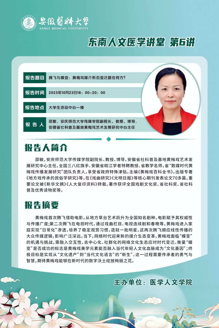 【东南人文医学讲堂第6讲】腾飞与蝶变:黄梅戏媒介形态变迁路在何方?(邵敏)